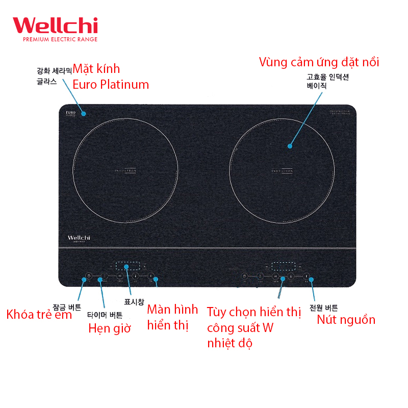 Bếp từ đôi Wellchi KRI-3000p Nhập khẩu Hàn Quốc