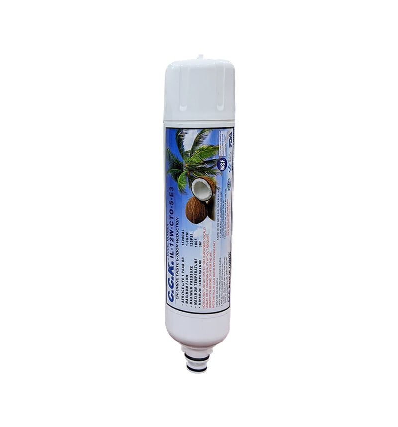 Lõi E3 UDF 12" thành phần là than hoạt tính hạt UDF Có khả năng hấp thụ cao, loại bỏ thuốc trừ sâu, clo và các chất hữu cơ khác,mùi, màu sắc và chloroform chất gây ung thư mạnh mẽ và các chất hữu cơ trong nước. vi khuẩn và chất sắt mangan và các kim loại nặng