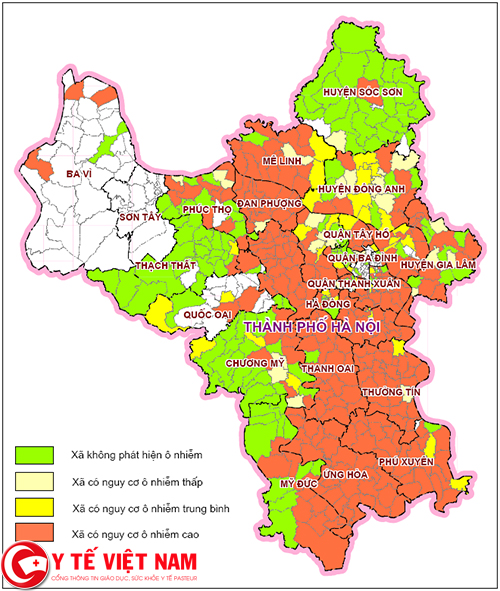 Theo như đánh giá của tổ chức UNICEF, các khu vực ở phía Nam Hà Nội bị nhiễm Asen rất nặng. Có thể kể đến: