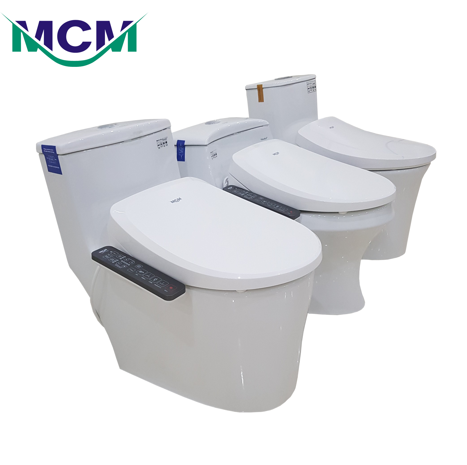 Hình ảnh bệt liền khối khi lắp với với nắp bồn cầu thông minh MCM Hàn Quốc