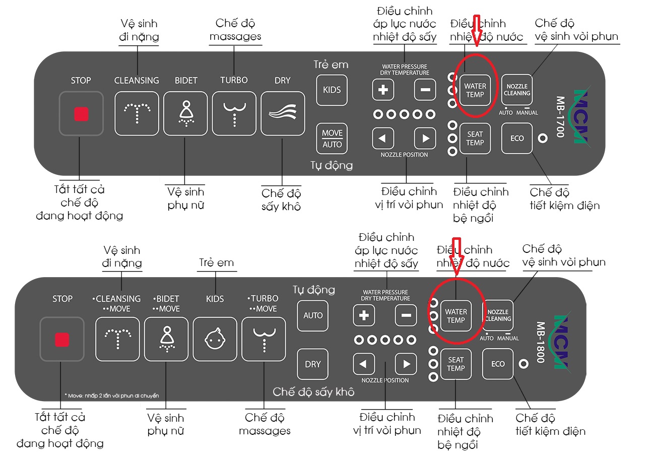 - Nhiệt độ nước đã bị tắt hoặc để ở mức thấp: Điều chỉnh nhiệt độ nước bằng nút WATER TEMP trên bảng điều khiển.