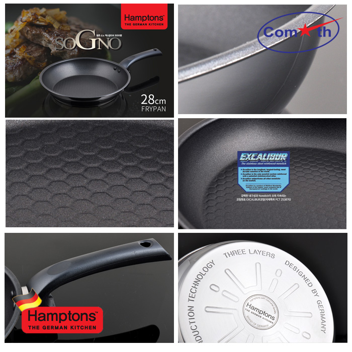 Chảo INOX 3 đáy phủ chống dính Hamptons SoGno HTS-28F thiết kế kiểu dáng hiện đại, chất liệu INOX chống oxi hóa an toàn cho sức khỏe bên cạnh đó sản phẩm được phủ một lớp Excalibur coating một sáng chế đến từ Hamptons chống mài mòn và chống dính cực tốt