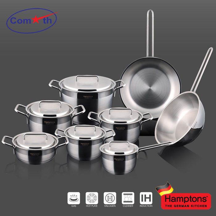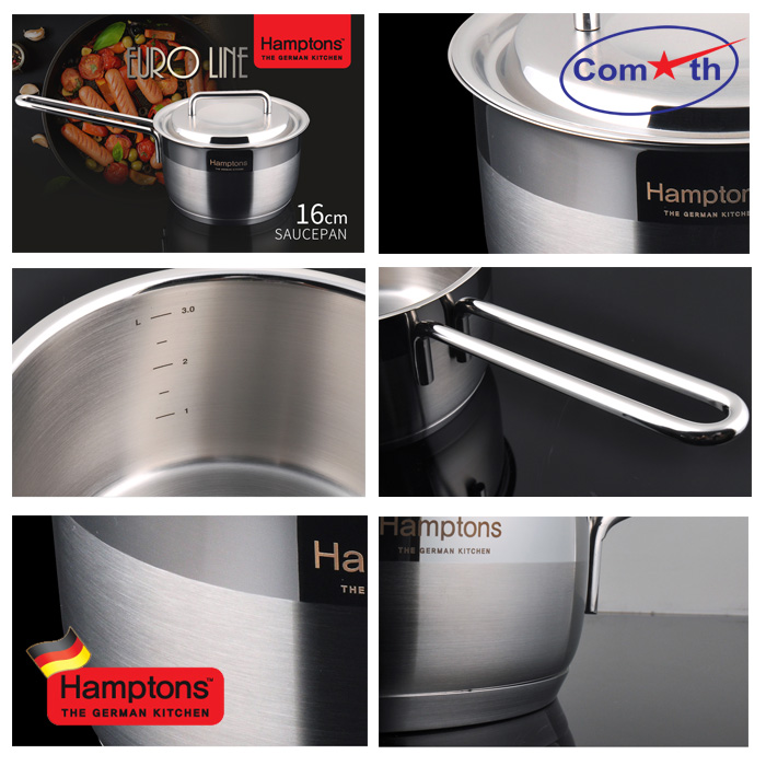 Chảo quánh INOX 3 lớp nấu bếp từ Hamptons EuroLine HEL-16S được sản xuất dưới sự giám sát chặt chẽ của OMERAS Cookware tại Đức. Các sản phẩm của Hamptons tạo ta luôn đảm bảo chất lượng tốt nhất. Hampton được thành lập từ năm 1893 là nhãn hiệu sản phẩm thiết bị nhà bếp uy tín bậc nhất trên thị trường.
