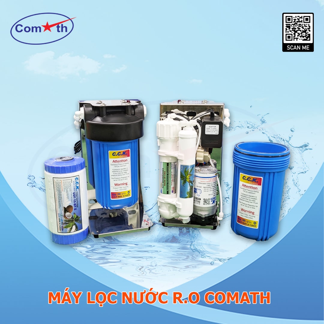 Toàn bộ lõi lọc của máy có nguồn gốc từ Đài Loan tuân thủ tiêu chuẩn NSF, FDA. Nước lọc qua máy lọc nước RO COMATH 100% đạt tiêu chuẩn nước uống trực tiếp của Bộ Y tế