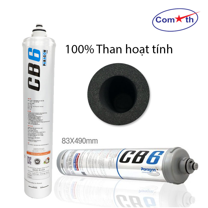 CB6 Lõi lọc Carbon khe hở 0.5 – 1 micron Có tác dụng hiệu quả trong việc loại bỏ Clo và các kim loại nặng trong nước Bộ lõi lọc được kiểm tra và đạt chứng nhận của NSF/ANSI Standard 53 với hỗn hợp cacbon chuyên dụng độc quyền có khả năng loại bỏ các kim loại nặng, Clo, các hợp chất Clo, các thành phần thuốc trừ sâu, diệt cỏ Atrazine, Lindane.