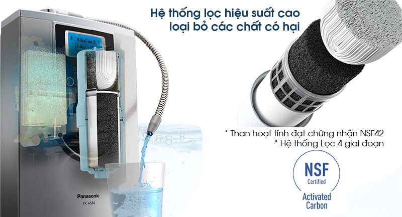 Đặc biệt, máy điện giải của Panasonic sử dụng than hoạt tính chất lượng cao được chứng nhận NSF42