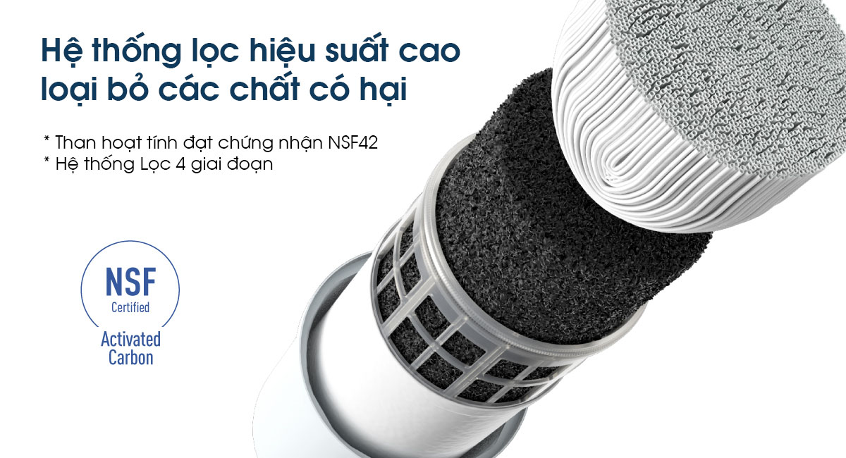 1 lõi gồm 4 tầng lọc Loại bỏ 13 chất độc theo tiêu chuẩn JIS Loại bỏ 4 chất độc hại cheo chuẩn JWPA |