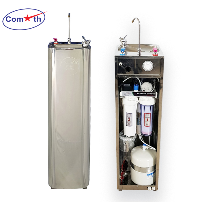 Nếu bạn đang cần tìm dòng máy lọc nước tích hợp nước nóng, được nhập khẩu nguyên chiếc thì Máy lọc nước RO 2 vòi nóng ấm Comath CM-N126UV là dòng máy lọc nước tích hợp chế độ nóng vô cùng sang trọng và chất lượng hiện nay tại Việt Nam. Là sản phẩm được sản xuất 100% tại Đài Loan, Với thiết kế dạng cây đứng vỏ INOX liên khối nhỏ gọn độc nhất tại Việt Nam máy lọc nước thực sự tạo ấn tượng mạnh với khách hàng. Máy có ngoại quan đẹp, lọc nước chất lượng khi sử dụng bộ lọc RO 8 lõi tiêu chuẩn và tích hợp đèn UV diệt khuẩn đem đến cho gia đình nguồn nước tinh khiết mát lành, an toàn
