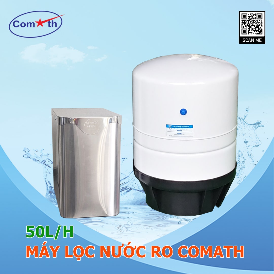 Máy lọc nước bán công nghiệp 50lít/giờ là sản phẩm do công ty COMATH sản xuất bằng công nghệ lọc nước RO của Mỹ. Máy lọc nước COMATH đạt tiêu chuẩn ISO 9001:2008, nguồn nước sau khi được lọc qua máy lọc nước COMATH đạt tiêu chuẩn của Bộ Y Tế, Viện Paster, tổng cục tiêu chuẩn đo lường chất lượng về nước khoáng thiên nhiên, nước uống đóng chai. Các sản phẩm máy lọc nước bán công nghiệp chính hãng luôn có tem chức năng được gián trên từng phụ kiện, lõi lọc thể hiện rõ dàng xuất xứ, cấu tạo, tác dụng và thời hạn sử dụng của từng bộ phận.
