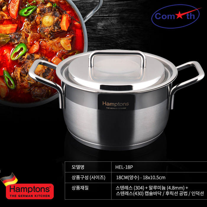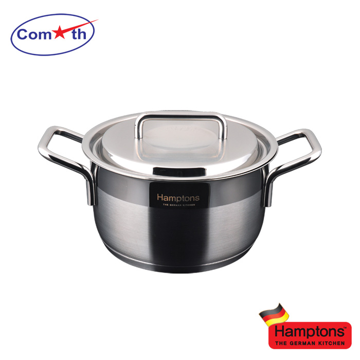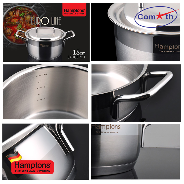 Nồi INOX 3 lớp nấu bếp từ Hamptons EuroLine HEL-18P được sản xuất dưới sự giám sát chặt chẽ của OMERAS Cookware tại Đức. Các sản phẩm của Hamptons tạo ta luôn đảm bảo chất lượng tốt nhất. Hampton được thành lập từ năm 1893 là nhãn hiệu sản phẩm thiết bị nhà bếp uy tín bậc nhất trên thị trường.