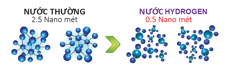 Phân tử nước Hydrogen nhỏ hơn gấp 5 lần so với nước thường