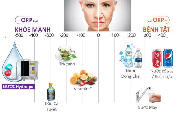 2. CHỐNG OXI HÓA MẠNH (Độ chống oxi hóa khoảng hơn– 450mV): Chứa lượng lớn hydro phân tử