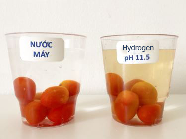 Đặc biệt, nước Kangen mạnh (nước kiềm mạnh) pH 11.0 - 11.5 có thể có bóc tách thuốc trừ sâu, thuốc bảo vệ thực vật, chất bảo quản trên bề mặt rau, củ, quả. Hãy xem thí nghiệm rửa cà chua bằng nước Hydrogen mạnh pH 11.5 so với nước máy