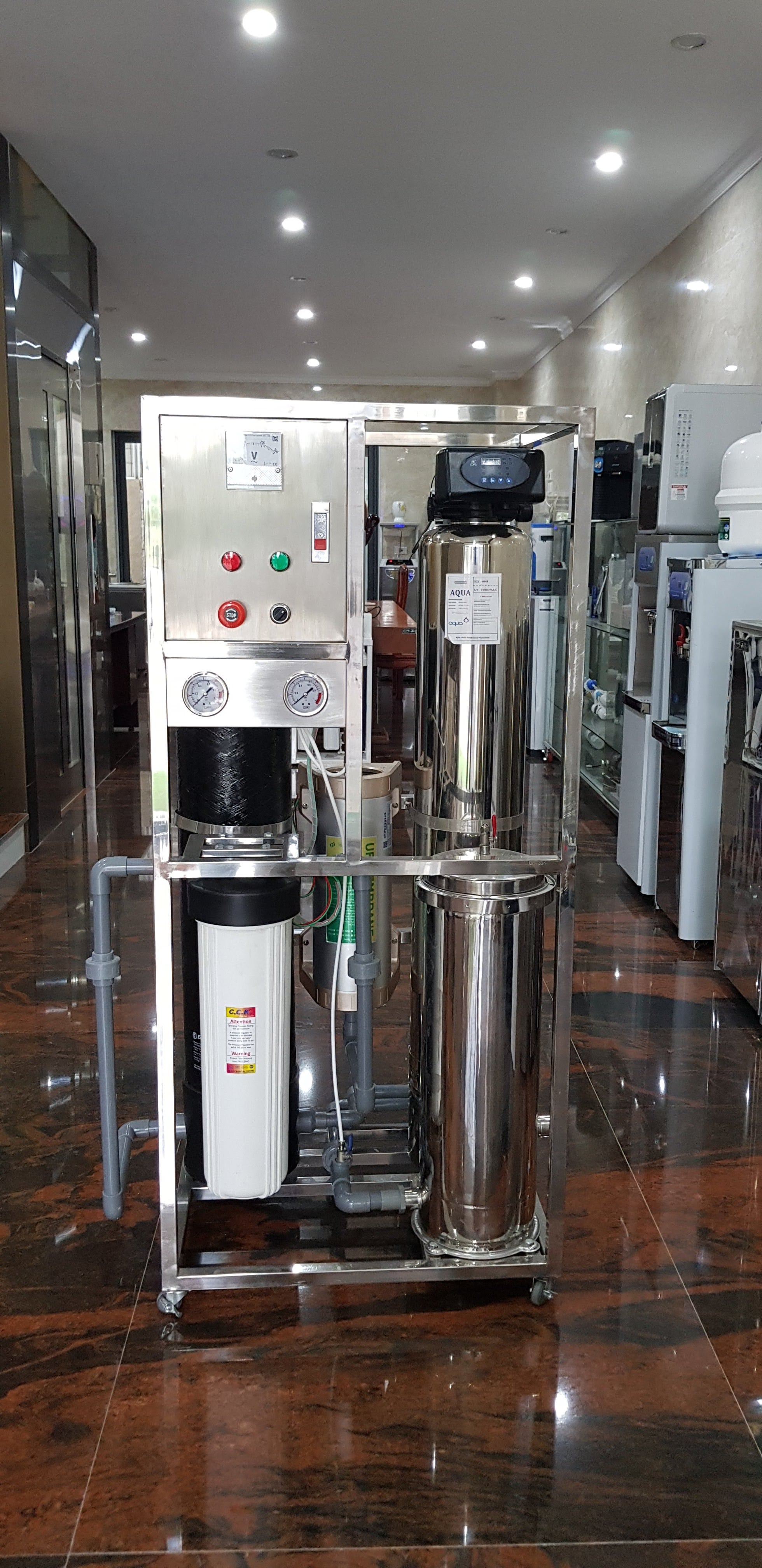 - Hệ thống lọc vi sinh: gồm đèn khử trùng UV, Máy sản xuất O-Zone khử khuẩn, lõi lọc xác khuẩn