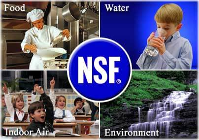 Tiêu chuẩn NSF viết tắt của National Sanitation Foundation là trung tâm hợp tác về an toàn thực phẩm và nước uống của tổ chức y tế thế giới ( WHO), một trong 3 tổ chức giám định độc lập, phi chính phủ, phi lợi nhuận uy tín ( bên cạnh WQA – Water Quality Association, UL- Underwriters Laboratories). NSF là tổ chức giám định độc lập do WHO đứng đầu, có chức năng kiểm nghiệm và chứng nhận chất lượng sản phẩm để đảm bảo cho người tiêu dùng được sử dụng sản phẩm an toàn theo đúng như quảng cáo của nhà sản xuất.